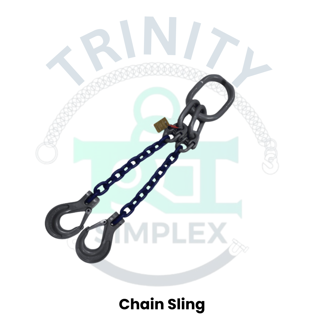 Chain slings are made of steel chains and are known for their durability, strength, and resistance to abrasion, cutting, and impact. They can be customized to have multiple legs using connecting links with round or oblong rings. They can be categorized into grade 80 and grade 100 based on their minimum tensile strength.